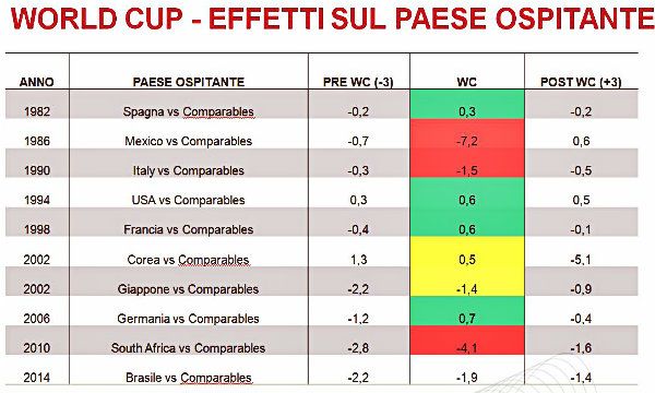 - aumento delle differenze con gli stati più poveri non coinvolti nel Mondiale.