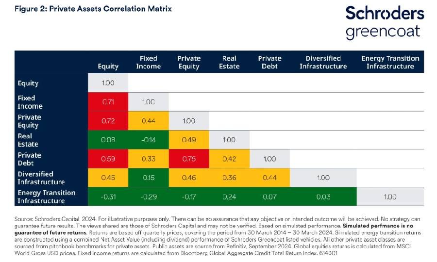 Le energie rinnovabili, guidate dal cosiddetto "power trio" della decarbonizzazione, dell'accessibilità economica e della sicurezza energetica, stanno diventando un fattore critico per soddisfare il futuro fabbisogno energetico. Pertanto, la transizione energetica globale continua a rappresentare un'opportunità di investimento potenzialmente senza precedenti. L'Agenzia internazionale per l'energia (AIE) stima che, a partire dai primi anni 2030, occorrerà investire circa 4.500 miliardi di dollari all'anno nella transizione energetica, in aumento di quasi tre volte rispetto al record del 2023. Anche negli Stati Uniti, nonostante il clima politico mutevole, da diversi anni si registra un ampio e diffuso sostegno, in gran parte bipartisan, agli investimenti nelle energie rinnovabili, dato che il settore è un motore fondamentale per la creazione di posti di lavoro e garantisce sempre più la competitività dei costi energetici. Dato che per gli investitori lo spazio di allocazione in asset alternativi è limitato - in media rappresenta circa il 14% dei portafogli (secondo una ricerca di Schroders) - ed è quindi una risorsa scarsa il cui valore deve essere utilizzato al meglio, riteniamo che massimizzare l'investimento nella transizione energetica sia fondamentale per un portafoglio ad alta performance, per tre ragioni fondamentali.