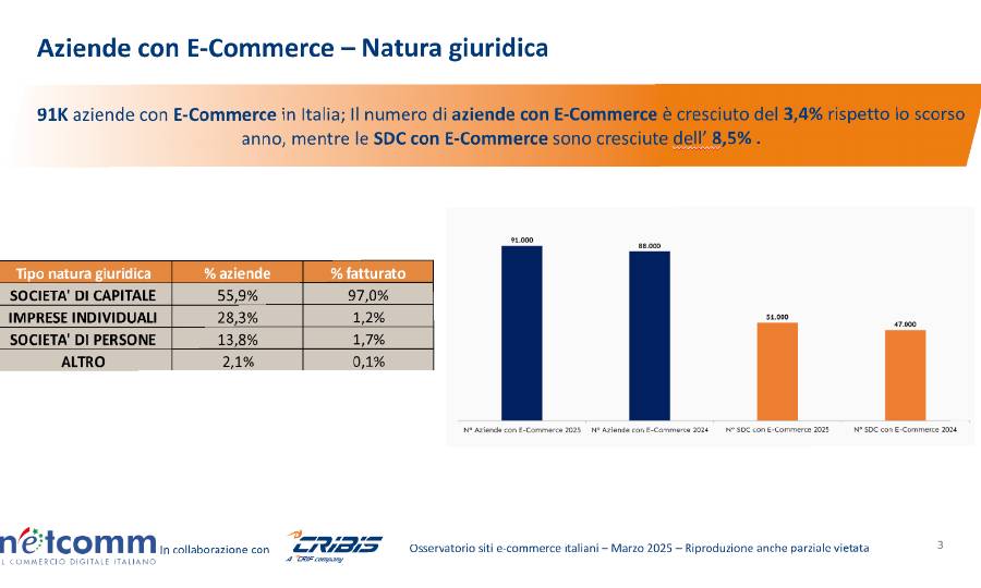 Il panorama dell'e-commerce italiano continua a evolversi, registrando una crescita significativa nel 2025. Secondo l'Osservatorio siti e-commerce italiani, realizzato da Netcomm in collaborazione con Cribis, il numero di aziende italiane con presenza online è salito a 91.000, segnando un incremento del 3,4% rispetto all'anno precedente.