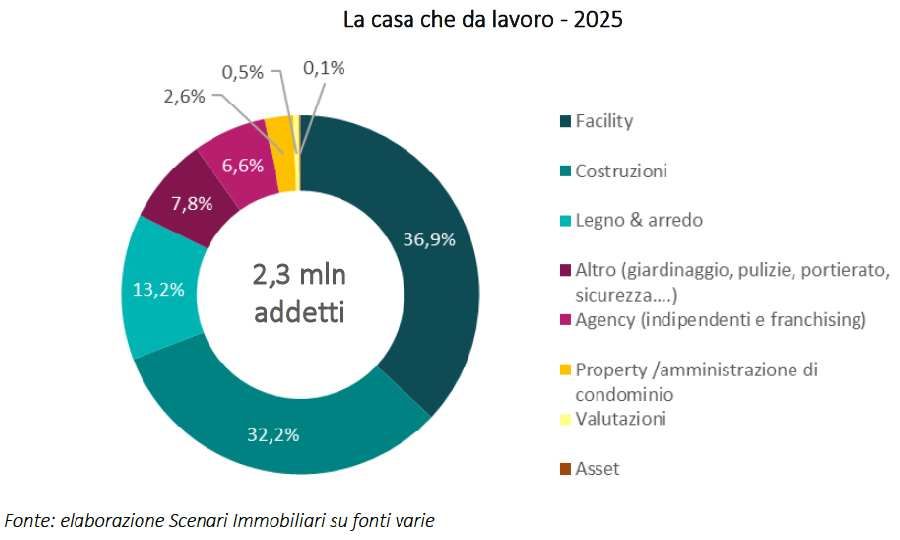 A livello globale, il valore complessivo degli immobili residenziali ha superato i 250.000 miliardi di euro. L'Europa, con appena un decimo della popolazione mondiale, detiene circa il 25% di questo patrimonio. L'Italia ricopre un ruolo chiave in questo contesto, con le sole abitazioni nazionali che rappresentano oltre il 10% del valore immobiliare continentale. Dei circa 135 miliardi di euro di fatturato immobiliare annuale in Italia, circa 100 miliardi derivano direttamente dalle compravendite di case, ma il valore generato si estende a una vasta filiera che include muratori, architetti, agenti immobiliari, property manager, manutentori, artigiani e operatori del design.