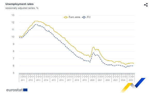 Le più recenti statistiche sul lavoro in Eurozona dipingono un quadro di leggera, ma significativa, instabilità. A novembre 2025, il tasso di disoccupazione destagionalizzato nell'area dell'euro si è attestato al 6,3%. È un miglioramento minimo rispetto al 6,4% registrato nel mese di ottobre 2025. Nondimeno, il confronto con l'anno precedente rivela una tendenza meno ottimistica, poiché a novembre 2024 il tasso si fermava al 6,2%. Questa dinamica solleva interrogativi fondamentali sulle future dinamiche occupazionali Europa in un contesto economico globale complesso. L'Unione Europea, nel suo complesso, ha mantenuto il proprio tasso di disoccupazione stabile al 6,0% a novembre 2025, ma anche qui si nota un aumento rispetto al 5,8% di dodici mesi prima.
