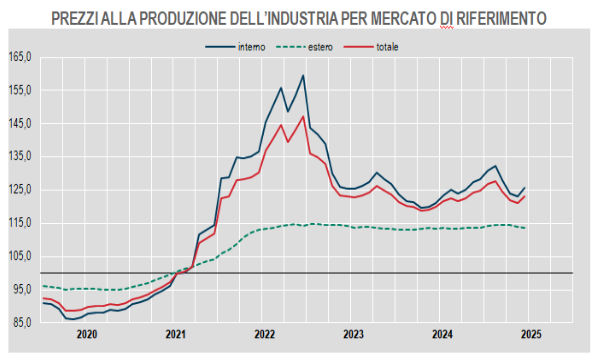 Diverso lo scenario per il mercato estero. Qui, i prezzi hanno mostrato una leggera diminuzione dello 0,2% su base mensile. Guardando all'anno, la crescita è stata solo dello 0,3%, un dato che nasconde differenze tra le aree: l'Area Euro ha visto un +0,8%, ma l'Area non Euro ha registrato una flessione dello 0,4%.