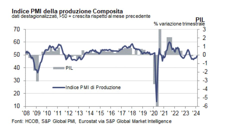 Quattro delle nazioni monitorate hanno indicato un aumento dei posti di lavoro, a non farlo è stata la Germania. Ad alimentare la crescita dell'occupazione è stato l'ulteriore slancio della fiducia. Le previsioni sull'attività nei prossimi 12 mesi sono infatti le più ottimistiche dalla vigilia dell'invasione dell'Ucraina da parte della Russia a febbraio 2022. I dati sotto settoriali hanno mostrato un maggiore ottimismo sia nel settore manifatturiero che terziario.