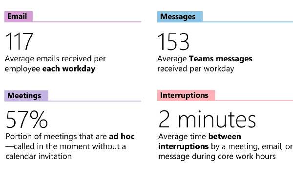 - un lavoratore medio riceve 153 messaggi Teams ogni giorno feriale;