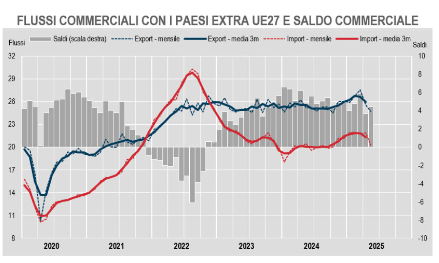 Export e import Italia extra UE: maggio 2025 in frenata
