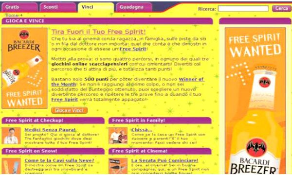 Mi ricordo un progetto realizzato con Martini, nel 2004 (10 anni fa!), realizzato su Tuttogratis.it. L’azienda in quel momento voleva posizionarsi sugli anni ’70. Abbiamo realizzato un progetto editoriale dedicato a quegli anni, con elementi come la classifica musicale di ognuno di quei 10 anni, i giochi in voga in quel periodo per un ritorno al revival, quali erano le icone dell’epoca, ecc. Un progetto tutto sponsorizzato da Martini, in cui c’era anche un test per riconoscersi nel look, o in un personaggio, e altre cose, con tutta una serie di altri servizi online.