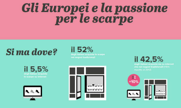 Il 9% degli uomini sono eShopper esclusivi di scarpe (rispetto al 4% del 2012) contro un 2% di donne, le quali per il 56% continuano a preferire il negozio tradizionale.