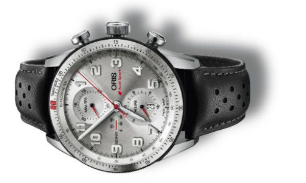 Questo nuovo modello si basa sul cronografo sportivo Oris Artix GT, orologio reso celebre dall'innovativa funzione dei piccoli secondi retrogradi al 9, elaborata da Oris. Il suo design è stato rielaborato per richiamare gli strumenti del cruscotto delle automobili da competizione Audi ed è rifinito in argento, colore distintivo della marca tedesca.