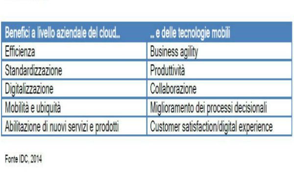 L'accesso mobile a servizi cloud viene valutato da IDC come un fattore ad alto impatto per favorire il processo di adozione e utilizzo di applicazioni mobili in azienda. IDC ritiene che la Terza Piattaforma - composta come è noto dall'insieme delle tecnologie mobili, cloud, big data e social - guiderà la maggior parte degli investimenti aziendali in ICT nei prossimi anni, contribuendo per il 75% alla crescita del mercato mondiale ICT, dai 3.200 miliardi di dollari del 2013 ai 5.300 miliardi previsti nel 2020. La Terza Piattaforma ha proprio il cloud al suo centro e grazie ad esso può offrire l'accesso alle applicazioni ovunque e in ogni momento; le soluzioni mobili, a loro volta, rivestono un ruolo chiave nell'aiutare le organizzazioni a trarre il massimo vantaggio da questo nuovo ecosistema applicativo.