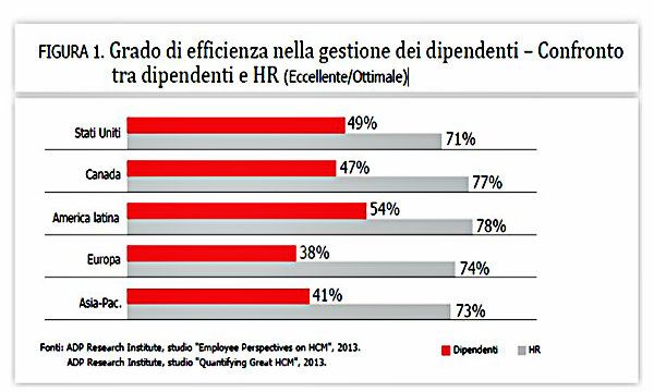 I risultati, presentati nel white paper intitolato "Human Capital Management's Disconnect: A Global Snapshot" hanno rivelato una persistente divergenza tra uffici HR e dipendenti a prescindere dalle dimensioni delle aziende o dalle nazioni in cui si trovano. I dati hanno anche indicato come questa divergenza si estende al management, che pure appare lontano dalle opinioni e dalle percezioni dei dipendenti.