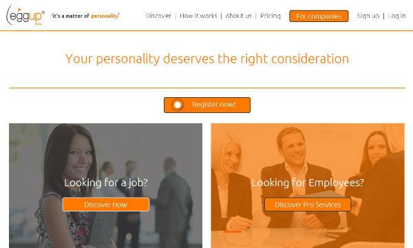 Eggup mette una piattaforma online nelle mani di aziende, headhunters, e persone. Una piattaforma che permette ai reparti HR e ai manager, attraverso un test erogabile online, di valutare i soft skills dei candidati, la loro compatibilità con il team.