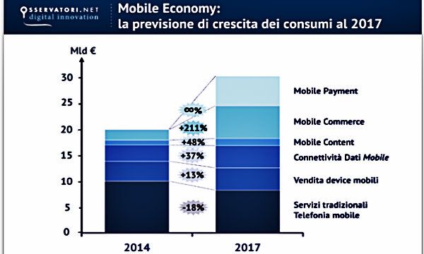 "Il Mobile è una grande opportunità per la crescita della digitalizzazione del nostro Paese (e, quindi, per il superamento del nostro digital divide) e abilita porzioni sempre più rilevanti dell'economia, con importanti impatti su consumatori, PA e imprese di qualunque settore", ha affermato Andrea Rangone, Coordinatore Osservatori Digital Innovation del Politecnico di Milano. "Al netto della contrazione dei servizi tradizionali di telefonia mobile, pari al -16%, la Mobile Economy cresce, infatti, del 23%, tocca i 25,7 miliardi di e vale l'1,65% del Pil. Questo mercato è destinato a superare i 37 miliardi di nel 2017, pari al 2,3% del PIL, grazie soprattutto alla spinta generata dall'utilizzo crescente di soluzioni di Mobile Commerce e Mobile Payment".