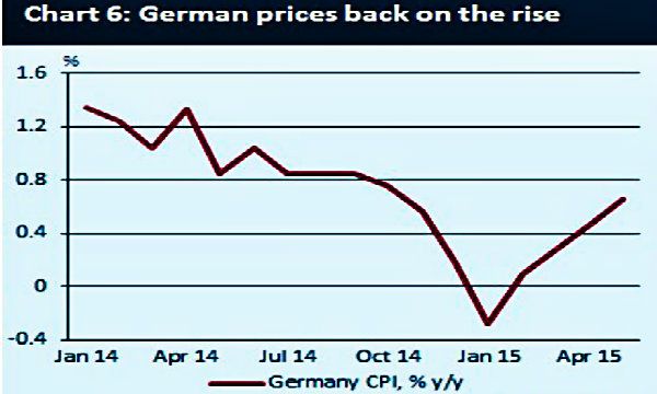 Il quadro in Europa continua a migliorare. Mentre le sorprese positive si sono in qualche modo stabilizzate, la crescita del PIL nel secondo trimestre dovrebbe essere consistente. In Germania in maggio i prezzi al consumo sono cresciuti, portando il dato su base annuale a 0,7%. Tuttavia l'indice PMI (Purchasing Managers Index) tedesco rimane fiacco, ha una correlazione minore rispetto alla produzione manifatturiera effettiva rispetto all'indice IFO tedesco. Infatti, gli ordinativi, la produzione industriale e le esportazioni sono tutti migliorati nell'ultimo periodo.