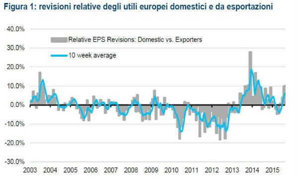 Ci aspettiamo che queste tendenze sottese dell'economia e dei profitti persistano e che gli utili domestici delle aziende europee continuino a dare un forte contributo alla ripresa complessiva della redditività aziendale in Europa, per il resto del 2015 e nel 2016.