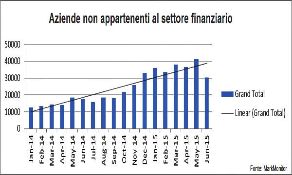 Ma ecco cosa penso sia interessante, quando si elimina il settore finanziario dall'equazione e si guarda solo al phishing per i settori non-finanziari si evidenzia che gli attacchi di phishing sono praticamente quadruplicati dal gennaio 2014. E' decisamente un aumento significativo che non è facile ignorare.