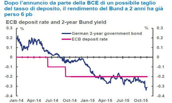 a - Abbassamento dell'intera curva dei rendimenti, anche se un parziale spostamento è già stato registrato, con molto probabilmente benefici per i mercati periferici (Italia, Spagna