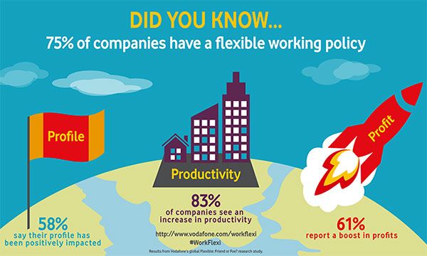 Vodafone ha presentato la ricerca "Flexible Work: Friend or Foe?" (Lavoro flessibile: amico o nemico?) sull'adozione e la percezione del lavoro flessibile da parte di lavoratori e imprese. Lo studio, effettuato su una popolazione di 8000 individui - suddivisa in lavoratori e datori di lavoro, manager e dirigenti di piccole e medie imprese, organizzazioni del settore pubblico e multinazionali di 10 Paesi - evidenzia che il 75% delle aziende, a livello globale, ha introdotto politiche di lavoro flessibile per consentire ai loro dipendenti di organizzare in modo più autonomo la propria giornata di lavoro, utilizzando le tecnologie più avanzate per lavorare da casa o in mobilità.