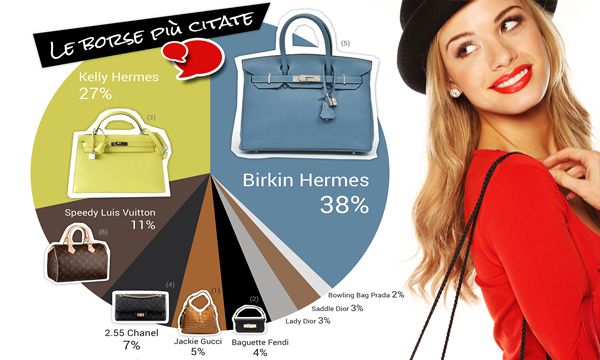Birkin Hermes, Kelly Hermes e Speedy Louis Vuitton sono le borse più menzionate sul web, ma sono la Saddle Dior e la Jackie Gucci le più amate, ma Jackie Gucci e Baguette Fendi quelle più "costose" su Google. Il maggior numero di menzioni su queste borse proviene da Indonesia, Stati Uniti e Polonia e il mezzo digital più utilizzato per commentare, raccontare o recensire è Twitter.