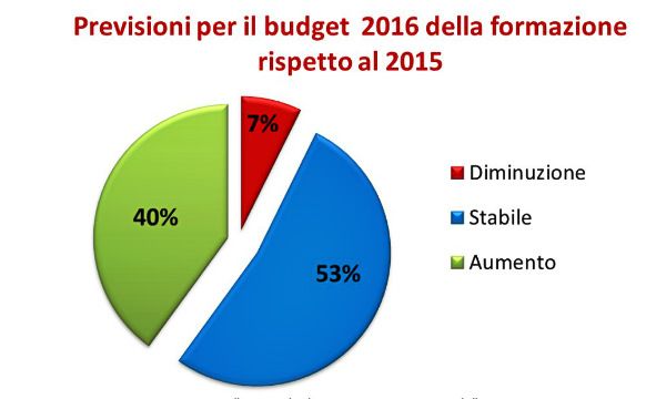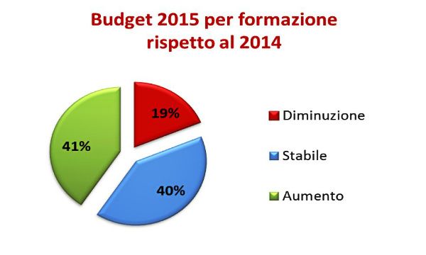 Nonostante il persistere di diffusa incertezza, è possibile affermare che il 2015, per il campione di rispondenti, ha rappresentato un anno rilevante per la formazione. Pur rimanendo elevata la percentuale delle imprese che dichiarano di mantenere stabile il budget (40%), ben il 41% delle aziende dichiara di aver aumentato le risorse finanziarie destinate alla formazione. Soltanto il 19% delle imprese indica di aver ridotto i budget. E' la percentuale più bassa che si è registrata negli ultimi anni.