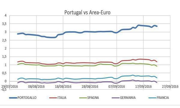 Nonostante la confortante notizia i mercati non sembrano apprezzare la carta portoghese, difatti nonostante i rimbalzi delle ultime sedute di tutti i governativi euro il decennale lusitano ha giovato solo in parte del movimento rialzista innescatosi da metà settembre. Per avere un'idea più precisa basta osservare il primo grafico, che confronta i rendimenti dei principali Governi europei partendo dal 01/08/16 fino al 21/09/16.