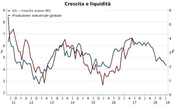 Dalla grande crisi finanziaria, l'aumento della moneta reale ha avuto un ruolo importante nel predire le dinamiche di crescita dell'attività economica globale (grafico 1). Con un anno di anticipo, ad esempio, i trend di liquidità hanno previsto correttamente il rallentamento dell'economia globale legato al caso Cina nel 2015, così come la ripresa sincronizzata degli ultimi anni.