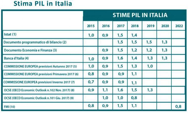 Per l'Italia, le stime 2017 rispetto allo stesso trimestre 2016: