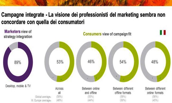 Lo studio ha rilevato che campagne pubblicitarie ben integrate e adattate ai diversi canali presentano notevoli benefici (aumentano l'efficacia della campagna del 57%). Ma purtroppo meno di una su due fra le campagne testate sembra esserlo (46%). Inoltre, lo studio ha evidenziato che gli esperti di marketing e i consumatori hanno opinioni diverse sul fatto che le campagne si integrino con successo. La maggior parte dei responsabili marketing intervistati (89% a livello Globale ed anche in Italia) ritiene che le proprie strategie siano integrate, ma poco più della metà dei consumatori è d'accordo (il 58% nel mondo - In Italia il 53%).
