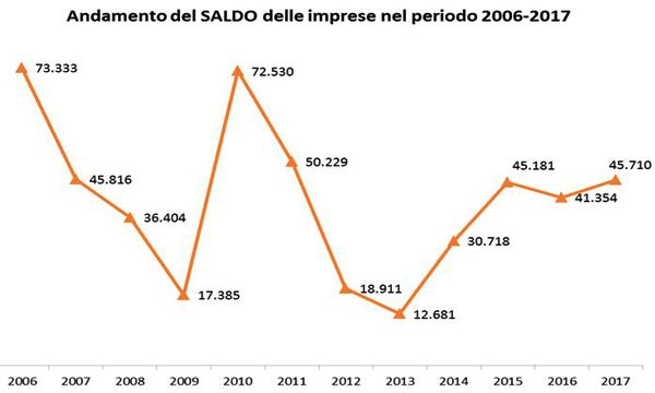 Gli italiani continuano a credere nell'impresa e, anche nel 2017, le nuove attività economiche hanno superato quelle che hanno chiuso i battenti. Sono infatti 46mila in più le imprese iscritte nei registri delle Camere di commercio, con una crescita dello 0,7% rispetto al 2016. Merito soprattutto della spinta che viene dalle regioni del Mezzogiorno, cui si deve quasi il 60% dell'aumento complessivo, una quota record nella storia del saldo nazionale.