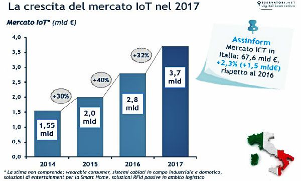 Il mercato IoT in Italia vale 3,7 miliardi di euro