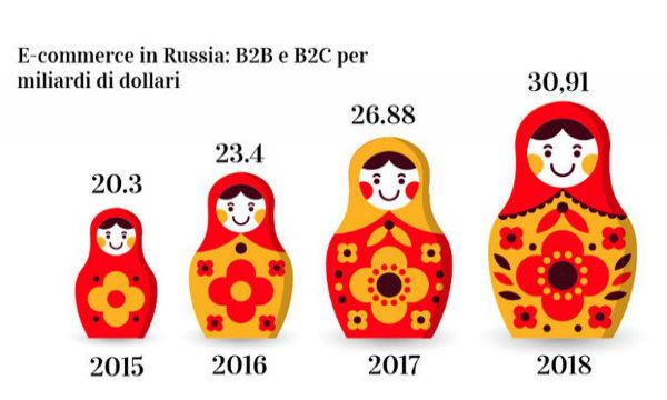 Lo certificano le principali istituzioni finanziarie internazionali. Nonostante l'embargo, la Federazione Russa nel 2017 è uscita dalla crisi e la stabilizzazione del rublo concorre alla crescita del commercio elettronico russo che raggiungerà nel 2018 i 30 miliardi di dollari, secondo le stime di statista.com. Nel 2017 l'eCommerce russo ha fatto registrare 26,88 miliardi di dollari.