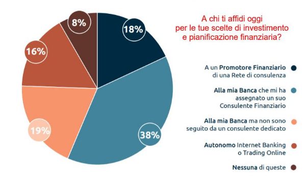 La scelta del consulente a cui rivolgersi è però un passaggio di cruciale importanza ai fini di un rapporto che deve svilupparsi nel tempo attraverso la condivisione di informazioni sensibili ed estremamente personali. Non è un caso quindi che l'indagine mostri come, tra i tre canali principali di individuazione del professionista a cui affidarsi, vi siano il passaparola e la relazione con la propria Banca, oltre a una scelta autonoma realizzata attraverso internet o incontri di presentazione. Questo porta a un altro punto fondamentale, che pone in primo piano la relazione fiduciaria tra cliente e consulente: per gli intervistati la fiducia nel professionista e l'affidabilità di quest'ultimo sono i due fattori più importanti che guidano la fedeltà degli investitori, ben più, ad esempio, di un elemento come quello legato ai costi del servizio.