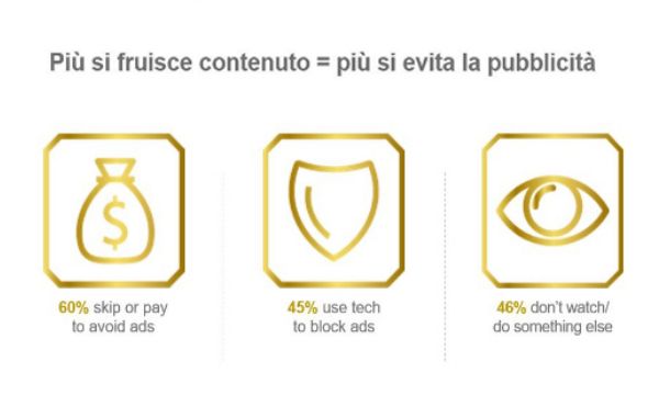 Questa è la realtà che deve essere affrontata. E con essa, il triste fatto che il 60% degli intervistati dice di "skippare" i comunicati o paga per non averne, il 45% dichiara di utilizzare la tecnologia per bloccare le comunicazioni (fonte Kantar Millward Brown AdReaction 2018)!