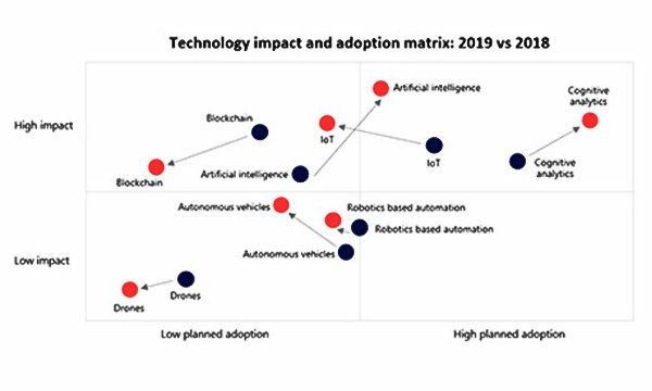 Innovazione e logistica sono da qualche tempo sempre più in relazione tra loro. Sarà il forte impulso al commercio mondiale avuto negli ultimi anni, sarà anche il driver dell'eCommerce, sta di fatto che i due settori interagiscono in modo esponenziale. Ma quali saranno i principali investimenti nell'innovazione nel settore retail, manifatturiero e logistico nel 2019? Lo svela la seconda indagine annuale "JDA & KPMG Digital Supply Chain Investment Survey" e che ha coinvolto i manager della supply chain. Condotta da Incisiv, l'indagine rivela che la visibilità end-to-end, guidata da intelligenza artificiale (IA), machine learning (ML) e analytics, continua a essere la priorità principale per il secondo anno consecutivo.