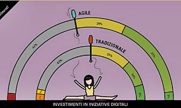 Le Direzioni HR stanno aumentando sforzi e investimenti per guidare la trasformazione digitale delle imprese: nel 2019 il 52% prevede una crescita degli investimenti in ambito digitale, fra cui un 24% che aumenterà il budget di meno del 10%, un altro 20% che stanzierà fino al 20% in più di risorse e un 8% che lo incrementerà di oltre il 20%, Il 42% manterrà gli investimenti invariati e soltanto il 6% intende diminuirli. Fra le organizzazioni agili, il 56% ha programmato un aumento della spesa digitale (contro il 50% delle aziende tradizionali), mentre il 3% la diminuirà (contro il 7% delle tradizionali).