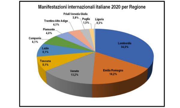 Lombardia, Emilia Romagna e Veneto si confermano le regioni in cui le rassegne internazionali sono maggiormente localizzate.