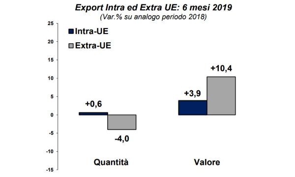 Non mancano mercati in espansione (Nord America e Far East segnano aumenti a doppia cifra in valore), ma l'incremento risulta spesso accompagnato da contrazioni in volume (prossime al -4% per USA e Canada; più contenute, -1,1%, per i Paesi dell'Estremo Oriente, con il Giappone in affanno).