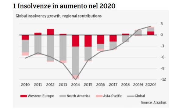 E' questo, in sintesi, lo scenario che delinea Atradius, tra le società leader nel mondo nel settore dell'assicurazione del credito, cauzioni e recupero crediti a livello internazionale, nel suo rapporto "Accelera la crescita delle insolvenze nel 2020".