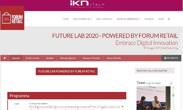 "Future Lab è l'evento che anticipa la ventesima edizione di Forum Retail, in programma a fine ottobre" dichiara Francesca Cattoglio, Owner IKN Italy. "Quest'anno si svolgerà in Live Streaming: grazie a una piattaforma digitale dedicata, possiamo assicurare alla nostra platea la partecipazione in totale sicurezza e il confronto diretto tra relatori e partecipanti, garantendo un'alta qualità dei contenuti grazie a speaker di altissimo livello" conclude l'imprenditrice.