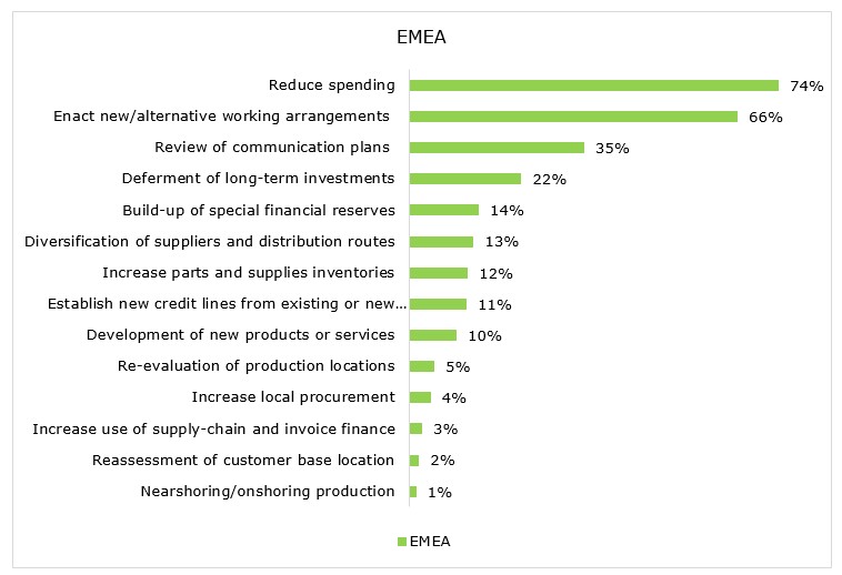 - Il 66% dei direttori finanziari sta dando priorità all'istituzione di nuove modalità di lavoro, come smartworking e telelavoro, per tutelare la salute della forza lavoro e garantire la continuità del business;