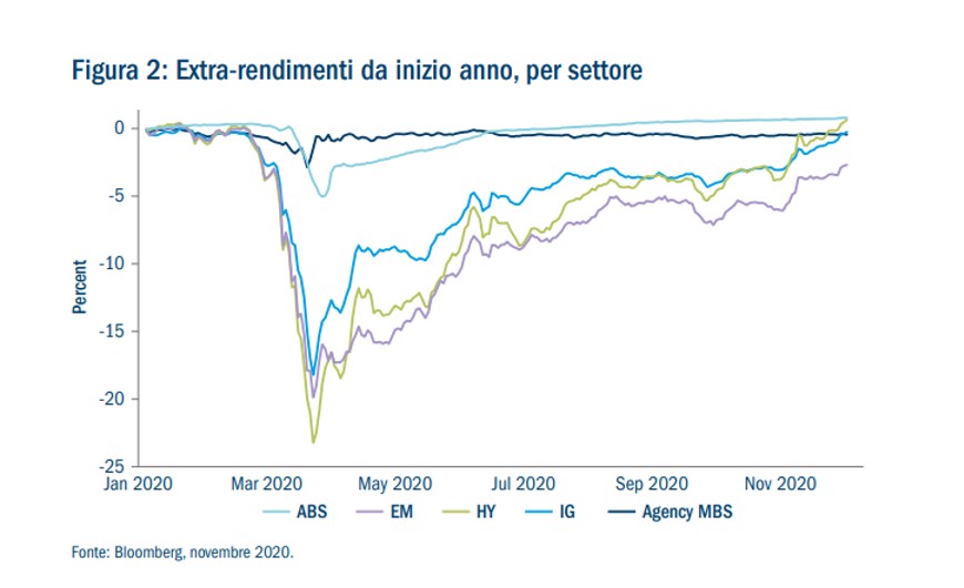 Dopo l'assottigliamento strutturale degli spread nei primi anni del 21° secolo, è subentrata una fase in cui i mercati hanno seguito andamenti decisamente più ciclici; il credito emergente presenta una stretta correlazione con le obbligazioni societarie dei mercati sviluppati ed è ben posizionato per trarre vantaggio da una ripresa anche modesta della crescita globale nel 2021.