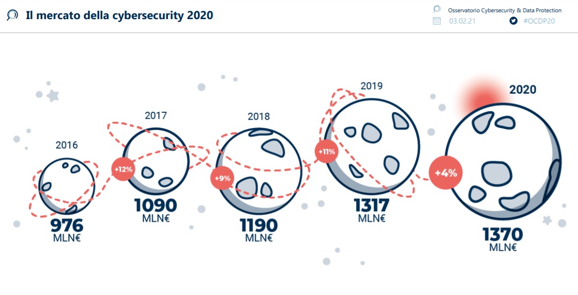 Infatti, quello passato è stato un anno di emergenza, non solo in campo sanitario, ma anche sul fronte della cybersecurity. Per il 40% delle grandi imprese sono aumentati gli attacchi informatici rispetto al 2019. La diffusione improvvisa e capillare del remote working, dello smartworking e del lavoro agile, l'uso di dispositivi personali e reti domestiche e il boom delle piattaforme di collaborazione hanno infatti aumentato le opzioni di attacco a disposizione degli attaccanti.