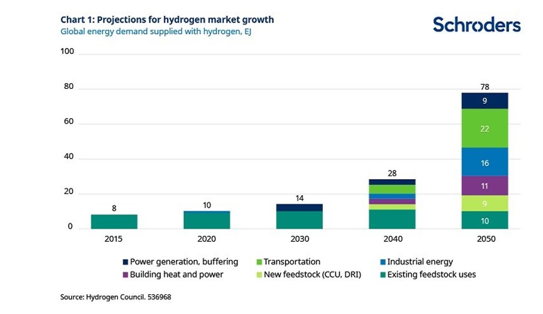 Simon Webber (Schroders): è un elemento rinnovabile necessario per la decarbonizzazione della produzione di energia e vedrà impieghi in quasi tutti i settori. Ma ci vorrà tempo