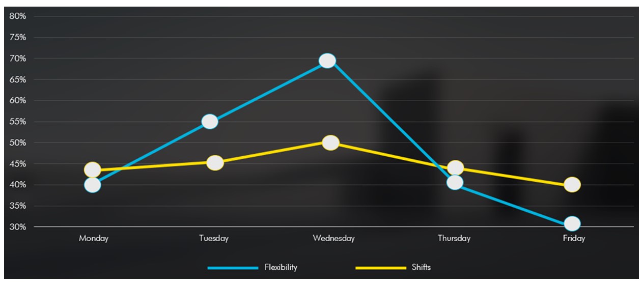 Proviamo ad analizzare l'andamento dell'occupazione in una settimana lavorativa.