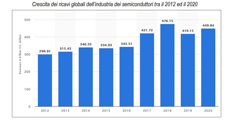 L'industria dei semiconduttori, nonostante la pandemia e le difficoltà riscontrate dalle supply chain, ha registrato una crescita delle vendite globali vicina al +7% nel 2020, con un tasso di incremento stimato per l'anno in corso che si aggira attorno al 9-10%. I semiconduttori, in particolare, vengono costruiti con materiali che presentano delle proprietà fisiche particolari, come il silicio ed il germanio, e rappresentano delle componenti essenziali per il funzionamento del comparto dell'elettronica e dell'Information Technology.
