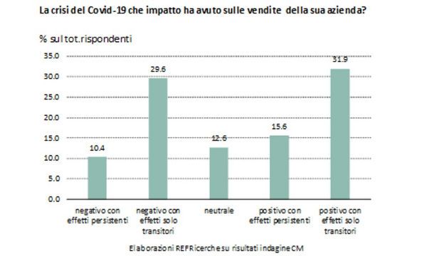 Investimenti - Nonostante la crisi economica e l'incertezza delle prospettive il 53% dei manager dichiara che la crisi COVID-19 non ha modificato gli investimenti aziendali; il 18% indica un impatto positivo. A trainare gli investimenti sono in particolare: innovazione di prodotto (58% dei rispondenti), introduzione di nuove tecnologie (32%), aspettative di vendita favorevoli (30%). Tra i fattori frenanti il 48% dei capi d'azienda evidenzia l'incertezza sull'evoluzione della pandemia, il 46% il timore di un generalizzato impoverimento dei consumatori italiani, il 40% incertezza sulle prospettive di medio termine.