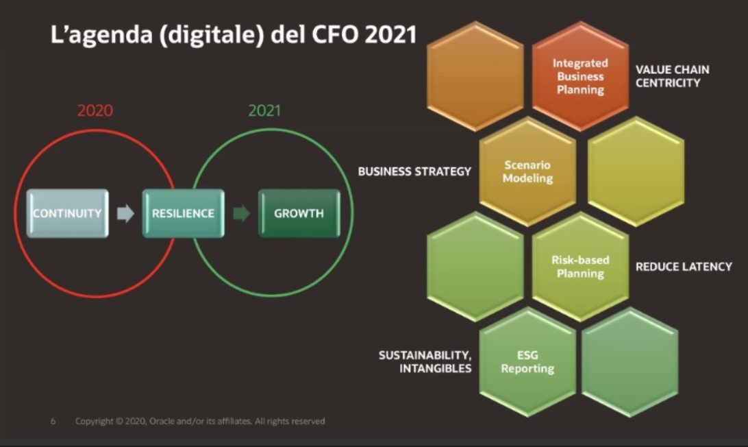 Se ne è parlato nell' evento "Dalla resilienza alla crescita: l'evoluzione digitale del finance" che si è tenuto recentemente online, organizzato da Oracle in collaborazione con ANDAF (Associazione Nazionale Direttori Amministrativi e Finanziari), con la testimonianza di aziende clienti quali E.ON e SIRAM - Gruppo Veolia.