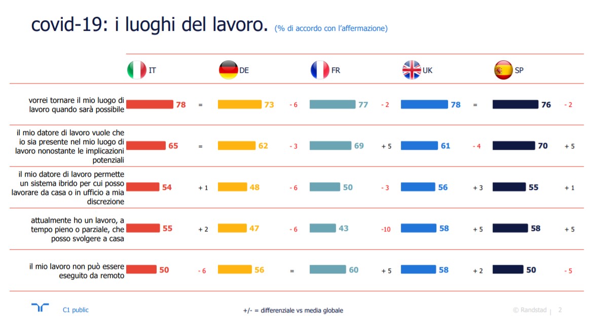 Il timore del virus è ancora molto elevato e porta oltre metà dei lavoratori a preferire lo smartworking, ma dalla ricerca emerge un forte desiderio di ritorno alla normalità con quasi otto dipendenti su dieci che vogliono tornare in ufficio appena possibile.