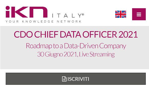 Il programma completo di CDO Chief Data Officer è consultabile sul sito dell'evento: https://www.ikn.it/evento/11166/cdo-chief-data-officer-2021/home