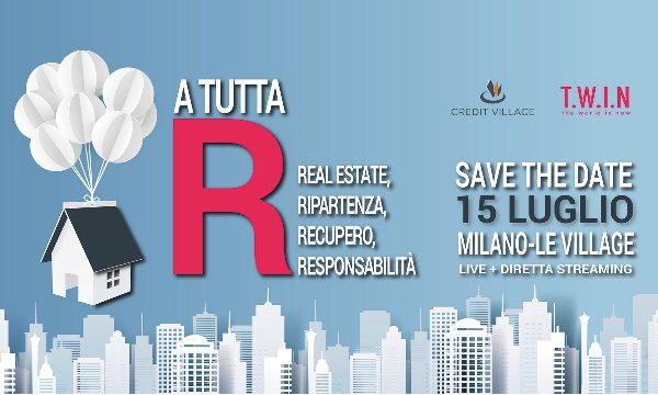 Una giornata con oltre quindici tra i più autorevoli esperti e operatori del Real Estate, per tracciare le direttrici su cui correrà la ripartenza del settore. Si terrà giovedì 15 luglio a Milano, l'evento phygital "A tutta R - Real Estate, Ripartenza, Recupero, Responsabilità", organizzato da Credit Village e T.W.I.N: a partire dalle ore 9, presso Le Village (Corso di Porta Romana, 61), una serie di incontri finalizzati a sviluppare, attraverso tavole rotonde tematiche, riflessioni centrali per la ripresa del mercato immobiliare che, frenato ancora dal Covid, nei primi mesi del 2021 ha mostrato segnali discordanti a livello globale, ma che già nel 2022 in Italia dovrebbe andare verso una forte accelerata.