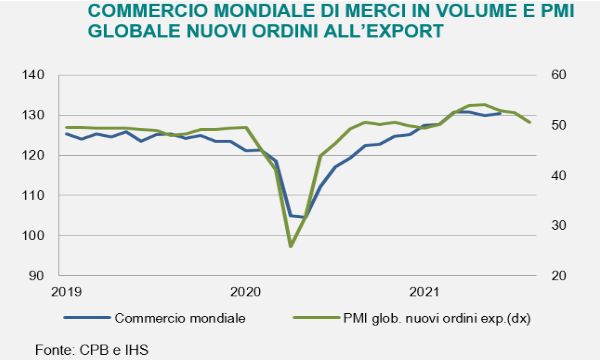 Per Istat e OCSE l'espansione del PIL rimane al di sotto dei livelli pre-pandemia e il volume del commercio mondiale è previsto in rallentamento causa problemi alle supply chain. Nell'eurozona fiducia delle aziende e dei consumatori in calo
